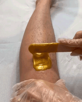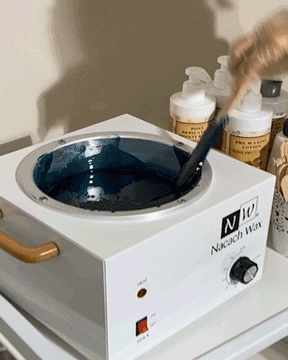 Heat the Nacach hard wax in a professional wax heater until it reaches a heavy consistency. It’s important to get the right viscosity as too thin can be too hot and runny, while too thick will not spread smoothly. Always check the temperature on a small patch of skin to assure safety.